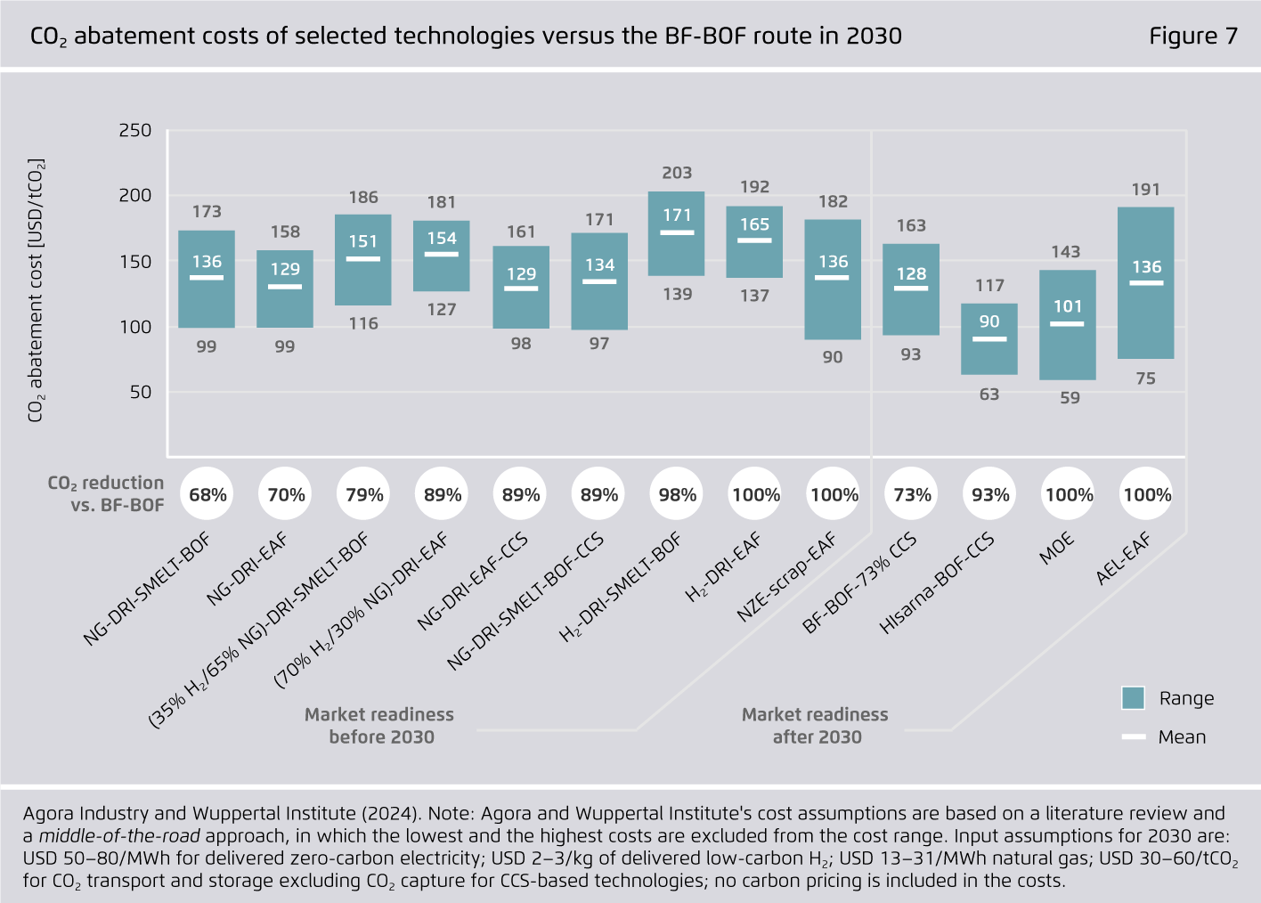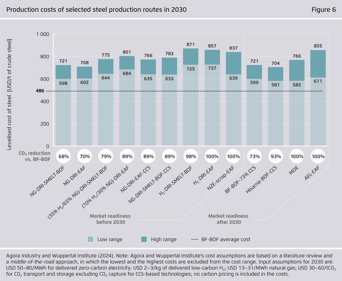 Expected market readiness of selected breakthrough technologies for steelmaking